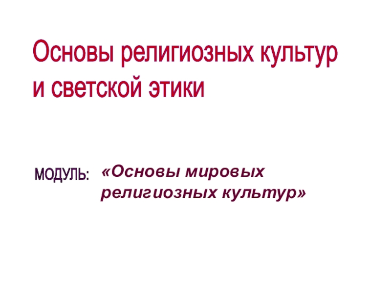 Основы религиозных культур  и светской этикиМОДУЛЬ:«Основы мировых религиозных культур»