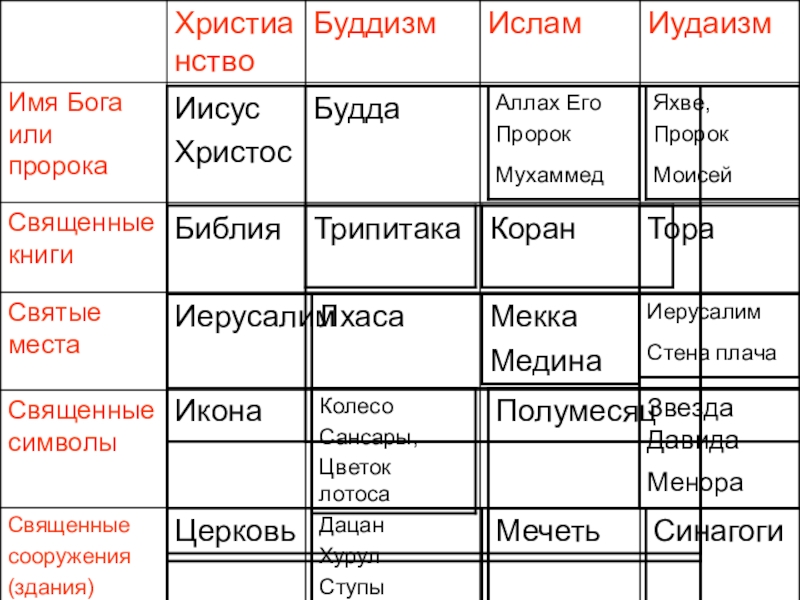 БУДДИЗМИУДАИЗМХРИСТИАНСТВОИСЛАМ