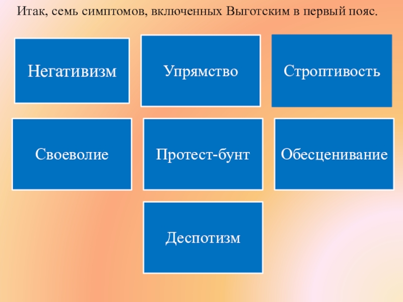 Те симптомы кризиса, которые выдвигаются на первый план, называется первым поясом симптомов или семизвездием кризиса трех лет.