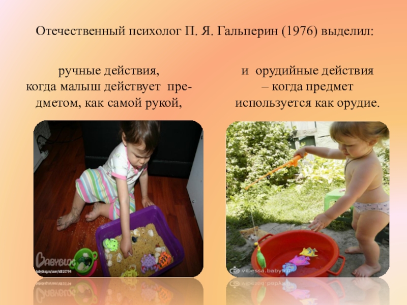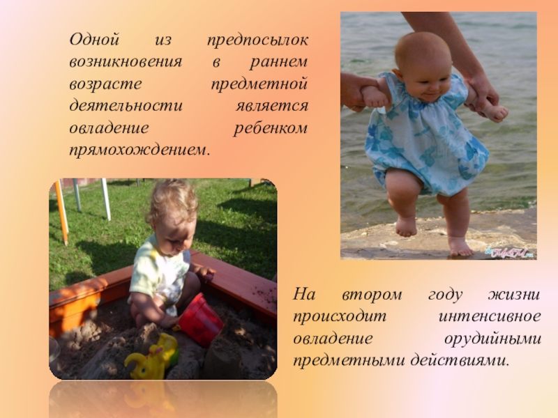 На втором году жизни происходит интенсивное овладение орудийными предметными действиями.