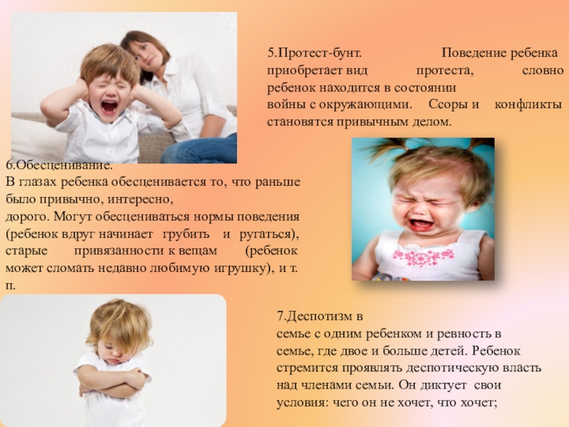 семье с одним ребенком и ревность в семье, где двое и больше детей. Ребенок стремится проявлять деспотическую власть над членами семьи. Он диктует свои условия: чего он не хочет, что хочет;