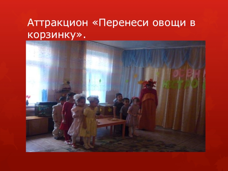 Слайд 23Аттракцион «Перенеси овощи в корзинку».