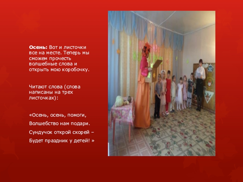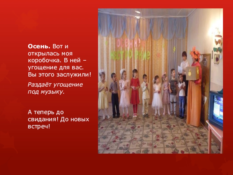 Слайд 10Осень. Ребята! А я приготовила для вас подарок – вот этот сундучок.