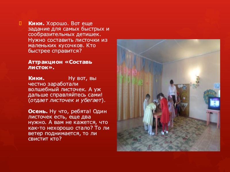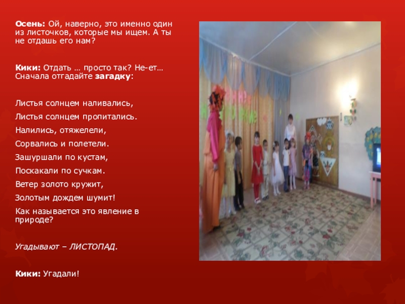 Слайд 12Осень: Ой, наверно, это именно один из листочков, которые мы ищем. А