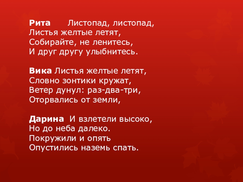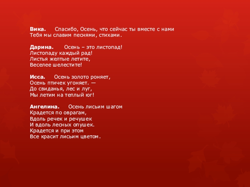 Слайд 8Вика. Спасибо, Осень, что сейчас ты вместе с нами