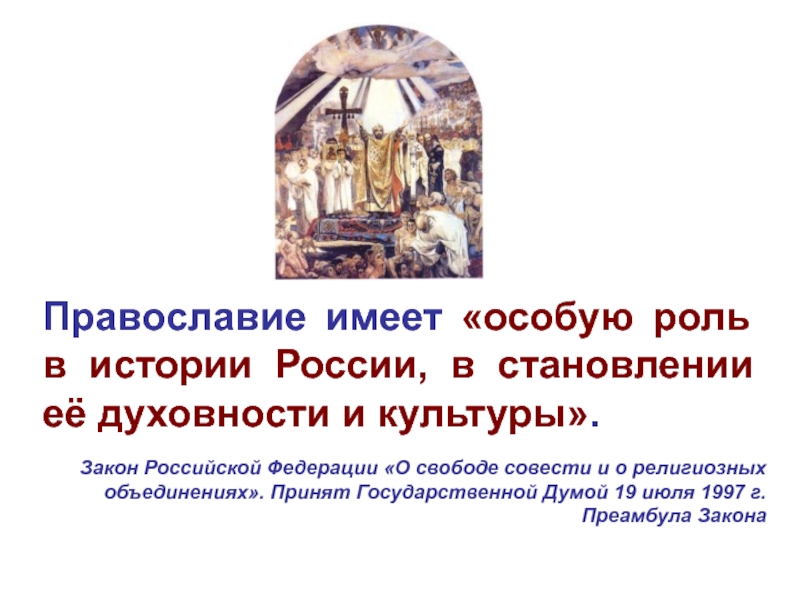 Закон Российской Федерации «О свободе совести и о религиозных объединениях». Принят Государственной Думой 19 июля 1997 г.