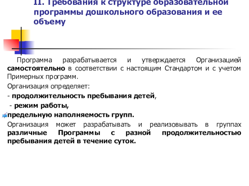 II. Требования к структуре образовательной программы дошкольного образования и ее объему. Содержание коррекционной работы и/или инклюзивного образования включается в Программу, если планируется ее освоение детьми с ограниченными возможностями здоровья.