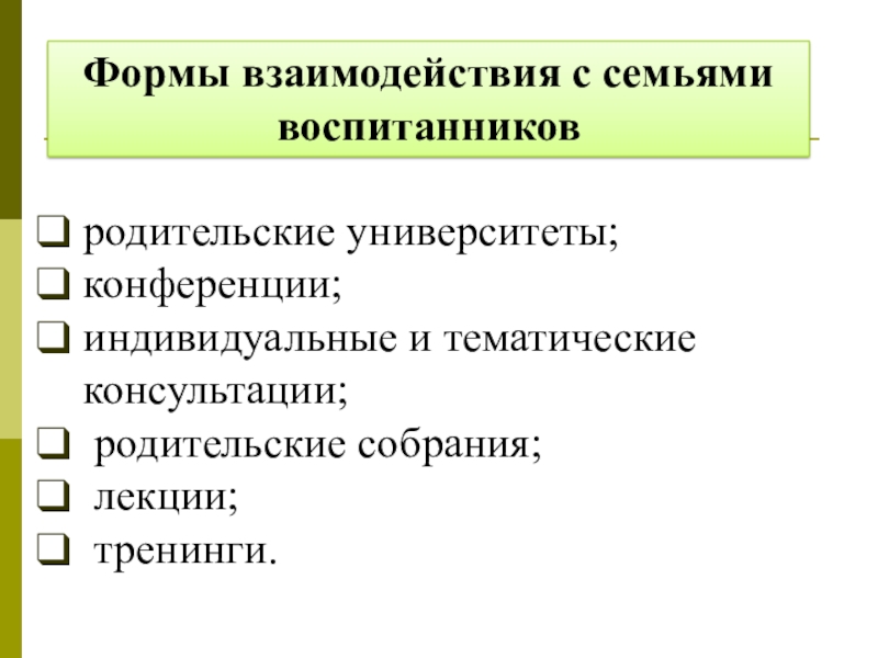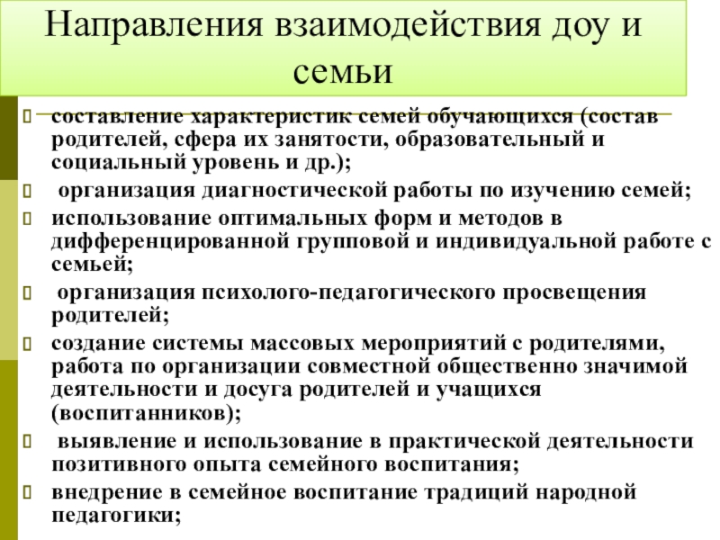 Содержание взаимодействия ДОУ и семьи