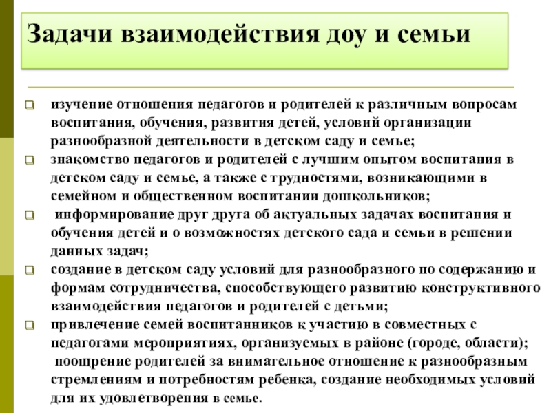 Задачи взаимодействия доу и семьи