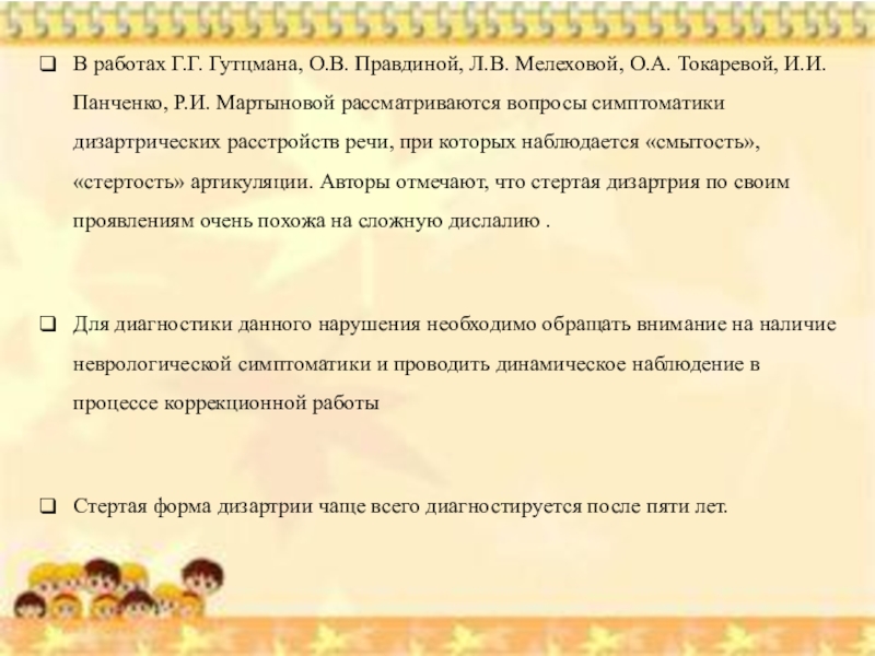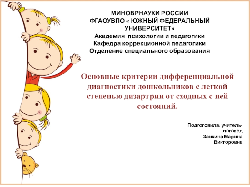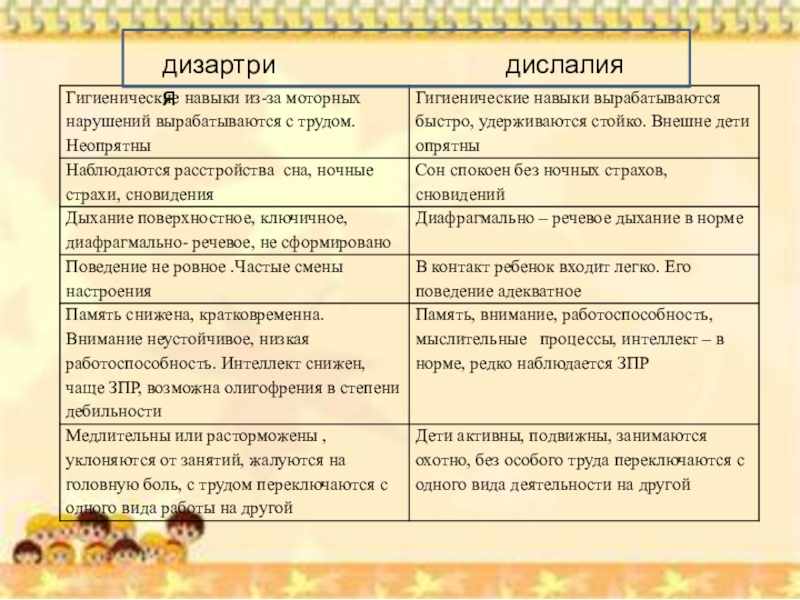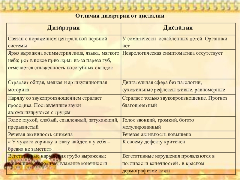 Основные критерии дифференциальной диагностики дошкольников с легкой степенью дизартрии от сходных с ней состояний.