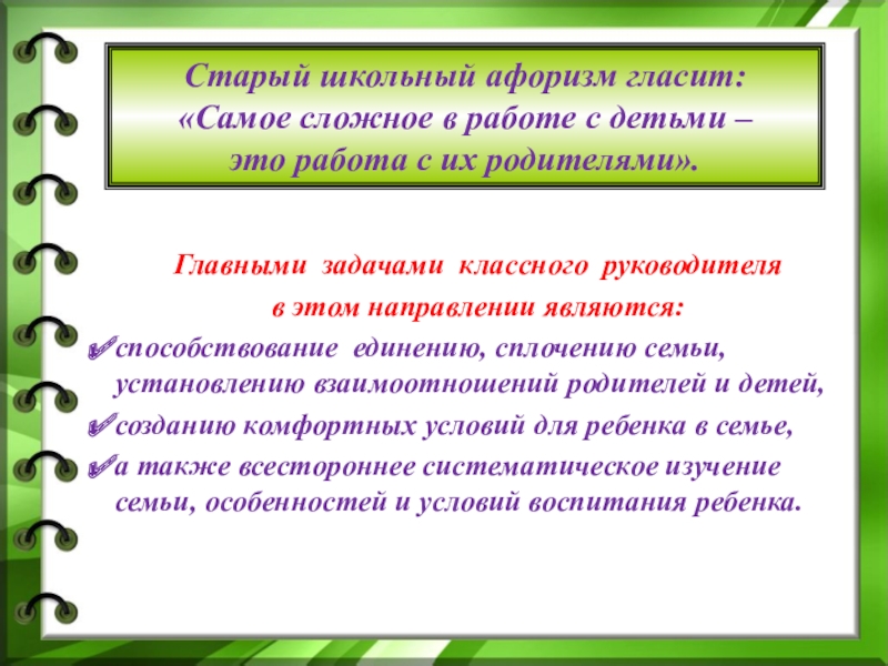 Функции классного руководителя разнообразны, работа с семьями своих учеников - важное направление его деятельности.