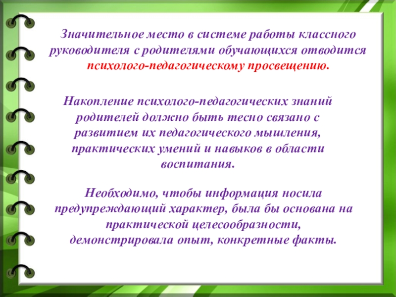 Психолого-педагогическое просвещение родителей