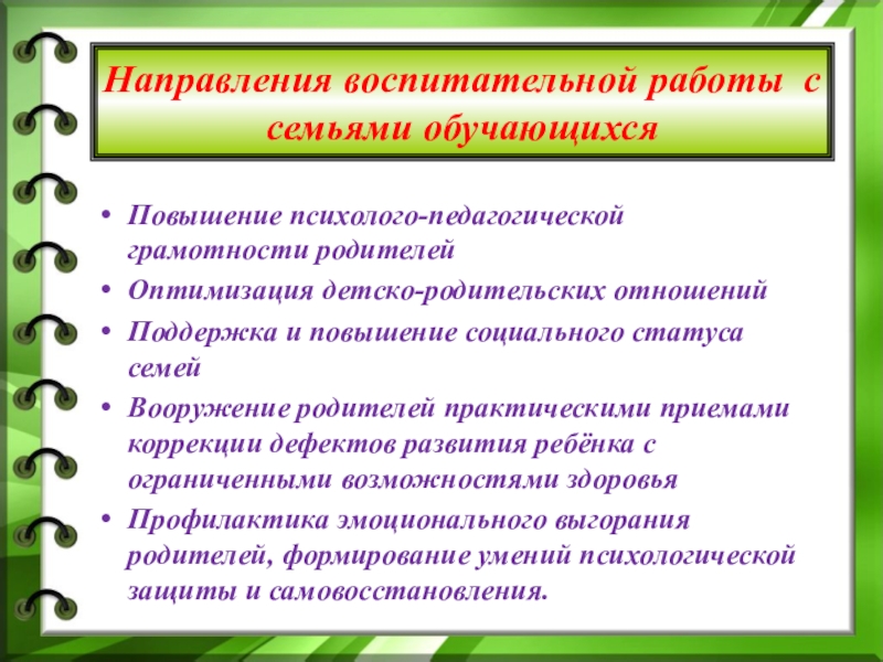 Направления воспитательной работы с семьями обучающихся
