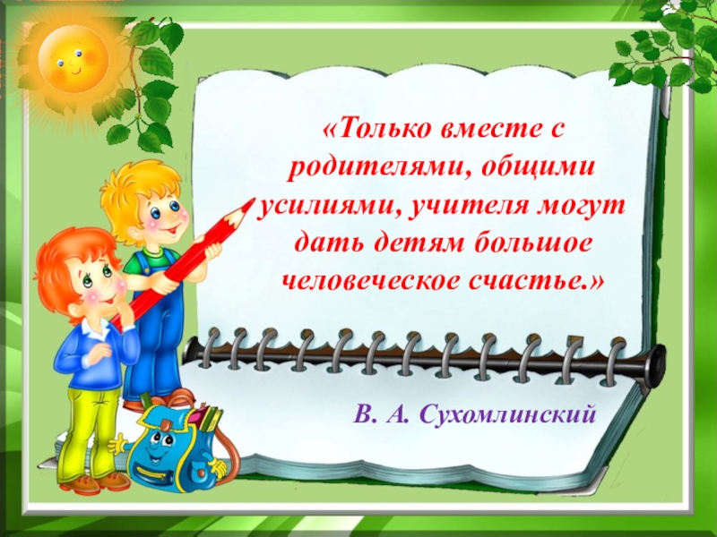 Слайд 3«Только вместе с родителями, общими усилиями, учителя могут дать детям большое