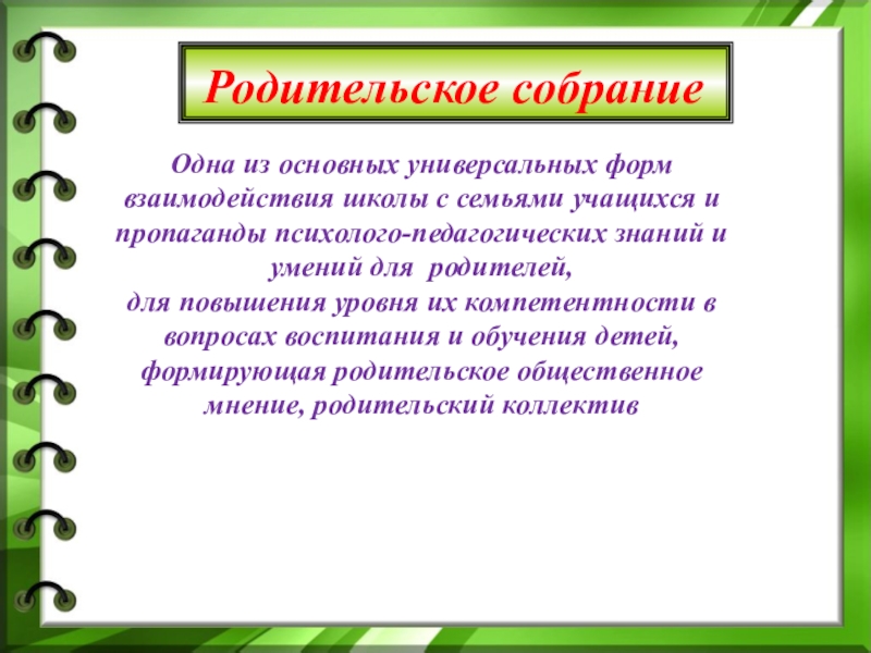 формирующая родительское общественное мнение, родительский коллектив