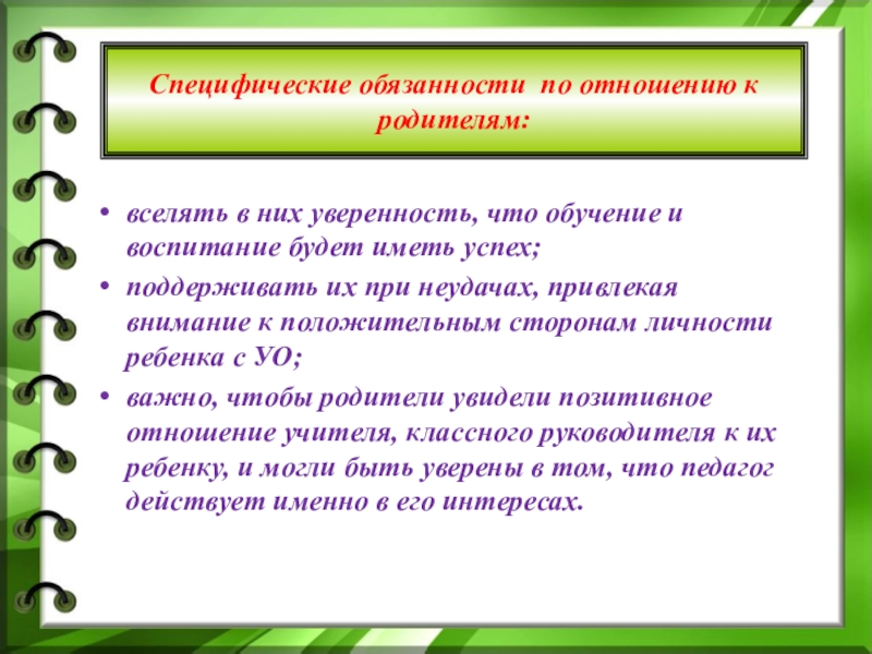 Слайд 6вселять в них уверенность, что обучение и воспитание будет иметь успех;