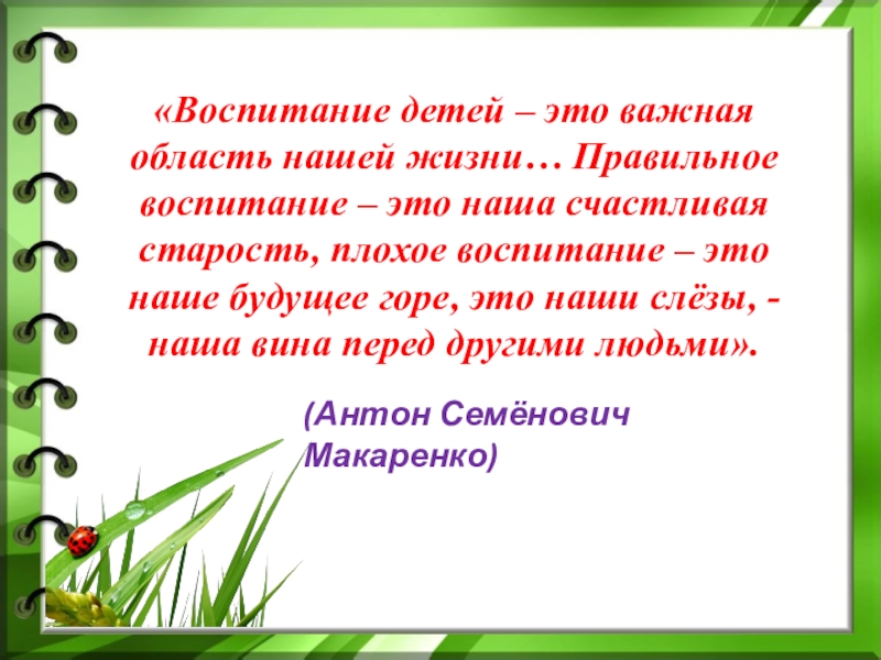 Слайд 29«Воспитание детей – это важная область нашей жизни… Правильное воспитание –