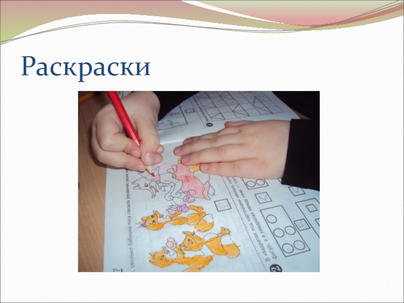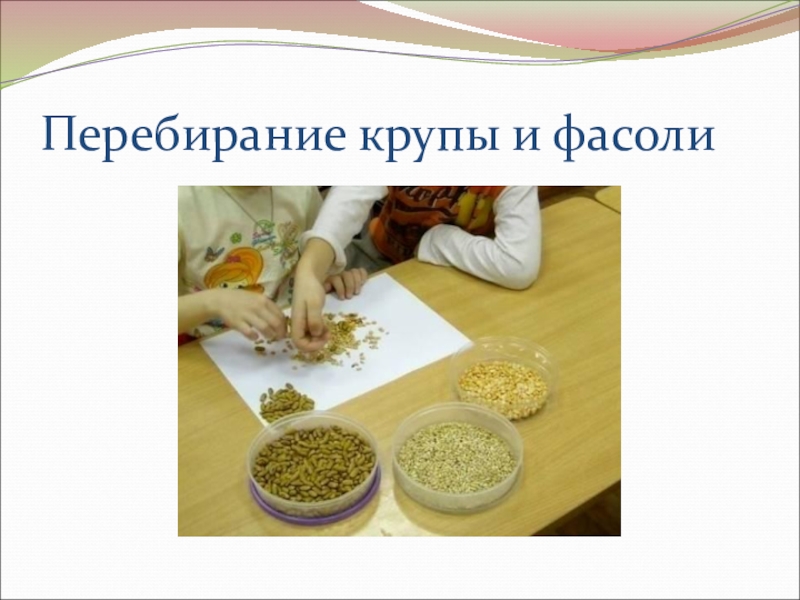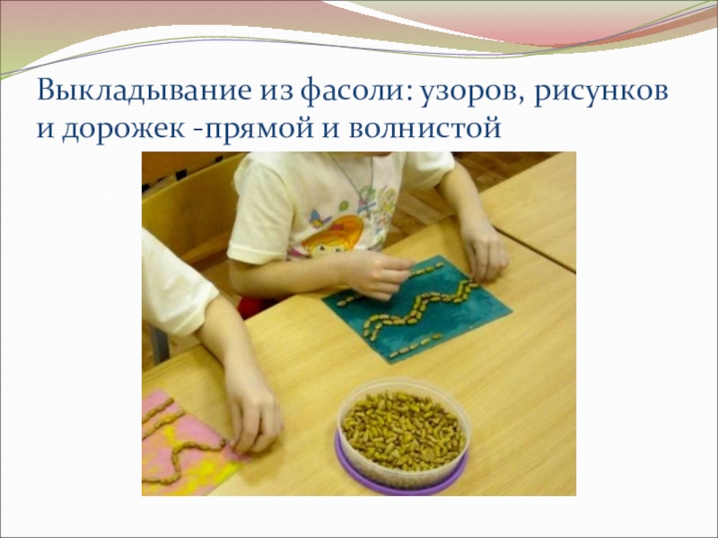 Слайд 19Выкладывание из фасоли: узоров, рисунков и дорожек -прямой и волнистой