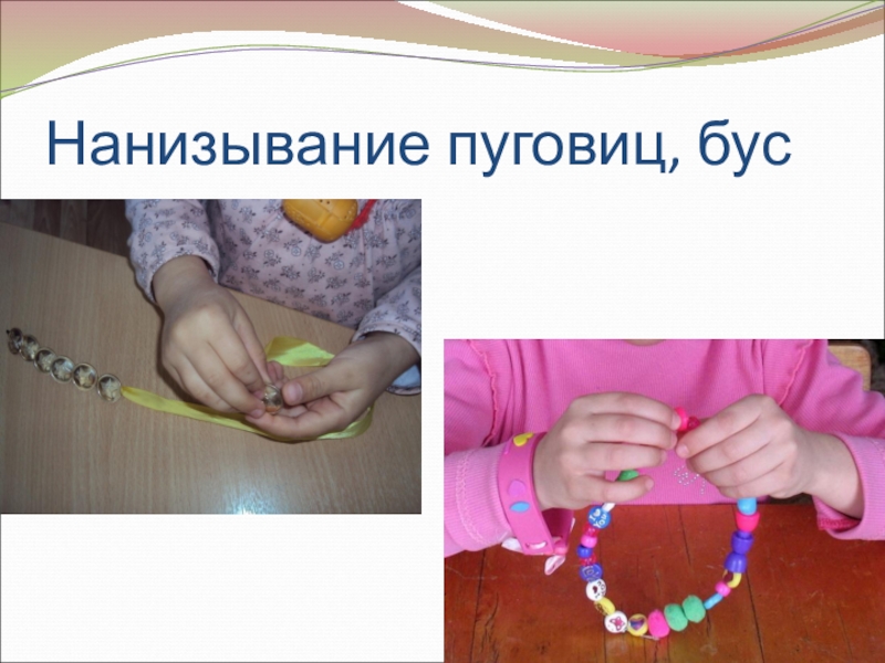 работы: - цветные клубки ниток для перематывания; - нанизывание бус, пуговиц; - выкладывание узоров из мелкого бисера на пластилине; - работа с грецкими орехами и фольгой; - массаж грецкими орехами; - большие шестигранные карандаши; - работа с фасолью (выкладывание узоров, рисунков и дорожек на пластилине); - перебирание крупы, фасоли; - работа с бельевыми прищепками; - выкладывание узоров из пуговиц на пластилине.