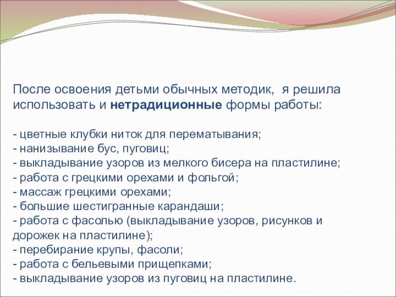 Слайд 13После освоения детьми обычных методик, я решила использовать и нетрадиционные формы