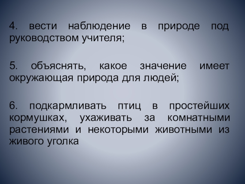 4. вести наблюдение в природе под руководством учителя;
