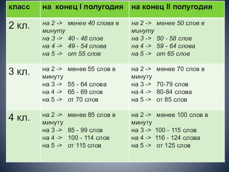 Нормы скорости чтения