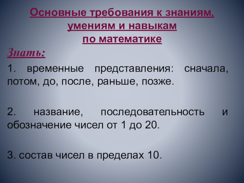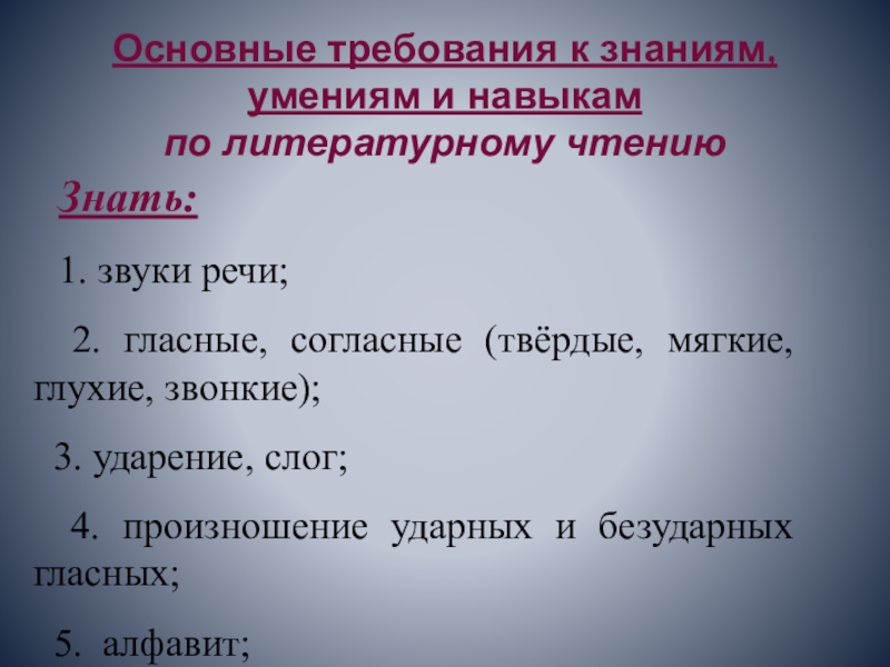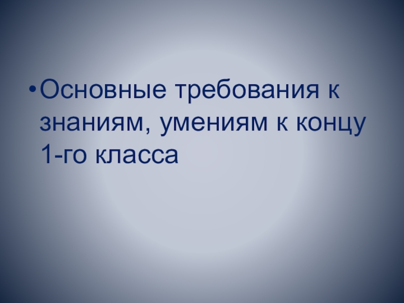 Слайд 1Основные требования к знаниям, умениям к концу 1-го класса