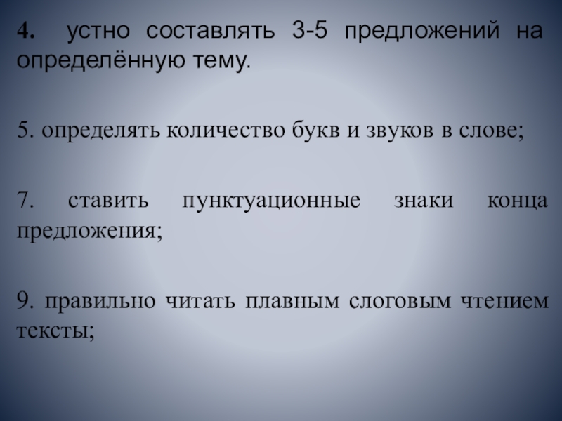 Слайд 64. устно составлять 3-5 предложений на определённую тему.