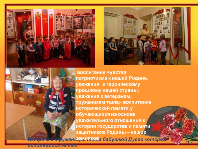 Слайд 16Встреча с труженицей тыла бабушкой Дусей которой исполнилось 98 лет