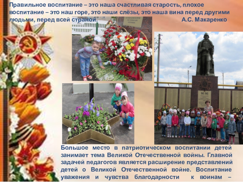 Правильное воспитание – это наша счастливая старость, плохое воспитание – это наш горе, это наши слёзы, это наша вина перед другими людьми, перед всей страной. А.С. Макаренко