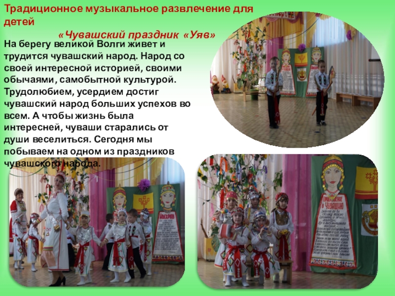 Трудолюбием, усердием достиг чувашский народ больших успехов во всем. А чтобы жизнь была интересней, чуваши старались от души веселиться. Сегодня мы побываем на одном из праздников чувашского народа.