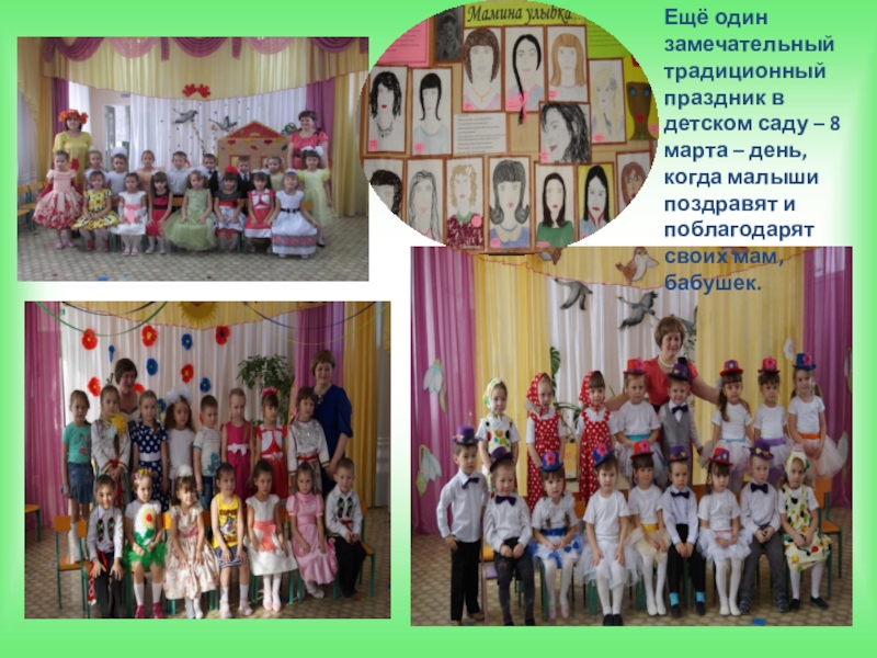Слайд 32Ещё один замечательный традиционный праздник в детском саду – 8 марта