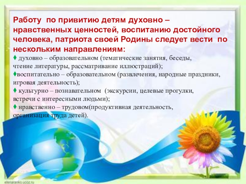 Слайд 4Работу по привитию детям духовно – нравственных ценностей, воспитанию достойного человека,