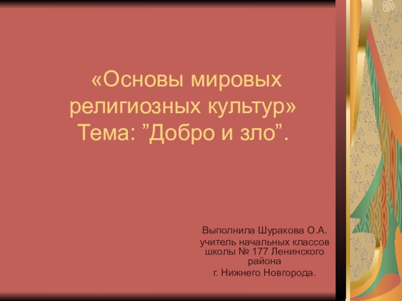 Слайд 1 «Основы мировых религиозных культур»