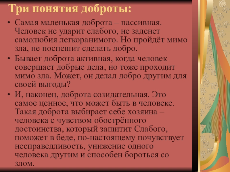 Слайд 13Три понятия доброты: