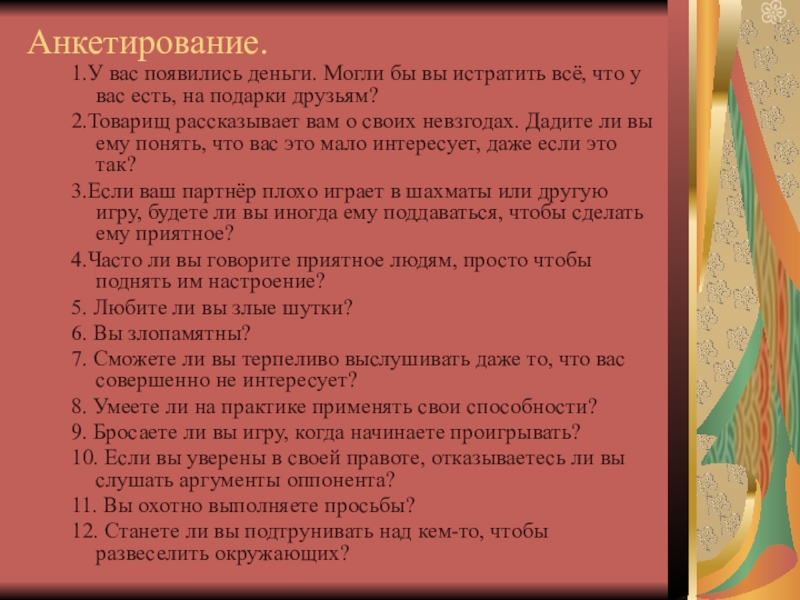 Слайд 18Анкетирование.