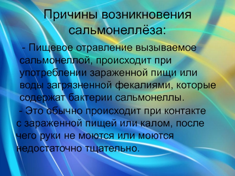 - Это обычно происходит при контакте с зараженной пищей или калом, после чего руки не моются или моются недостаточно тщательно.