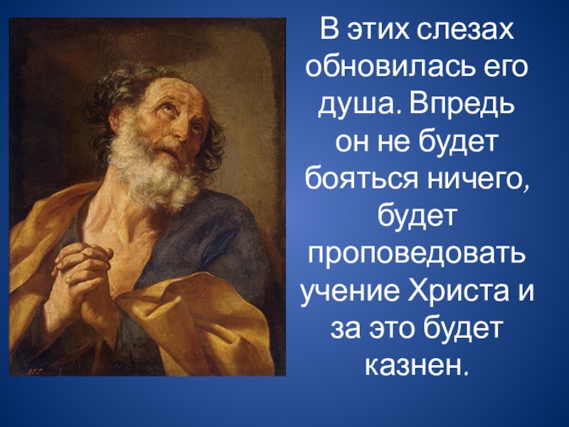 Слайд 9В этих слезах обновилась его душа. Впредь он не будет бояться