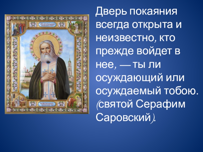 — ты ли осуждающий или осуждаемый тобою. (святой Серафим Саровский).