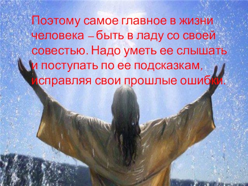 Слайд 13Поэтому самое главное в жизни человека – быть в ладу со