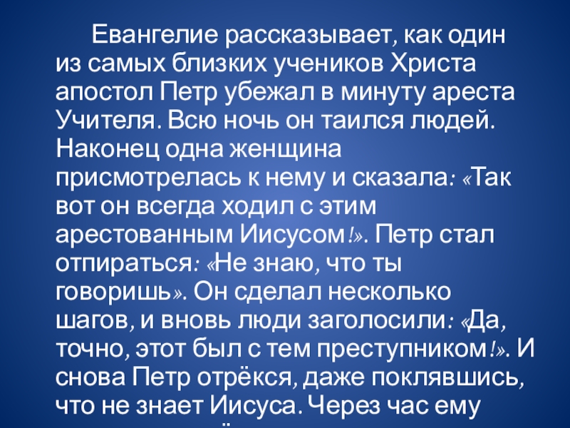 Слайд 7 Евангелие рассказывает, как один из самых близких учеников Христа апостол Петр