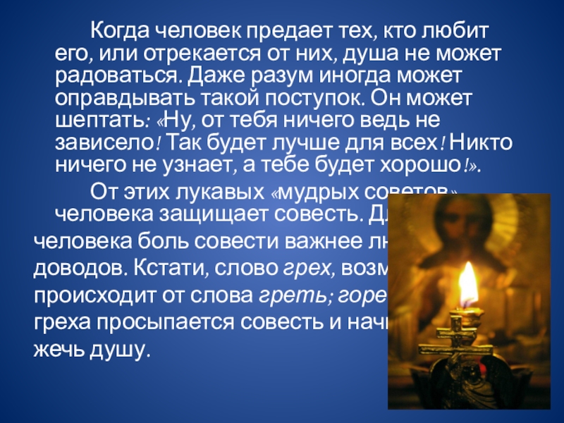 Слайд 10 Когда человек предает тех, кто любит его, или отрекается от них,