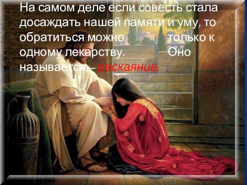 Слайд 15На самом деле если совесть стала досаждать нашей памяти и уму,
