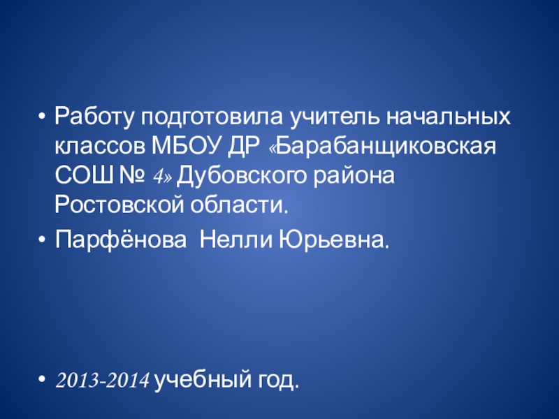 Слайд 26Работу подготовила учитель начальных классов МБОУ ДР «Барабанщиковская СОШ № 4»