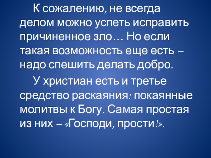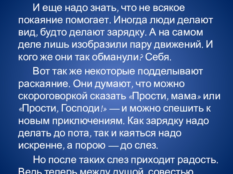 Слайд 22 И еще надо знать, что не всякое покаяние помогает. Иногда люди