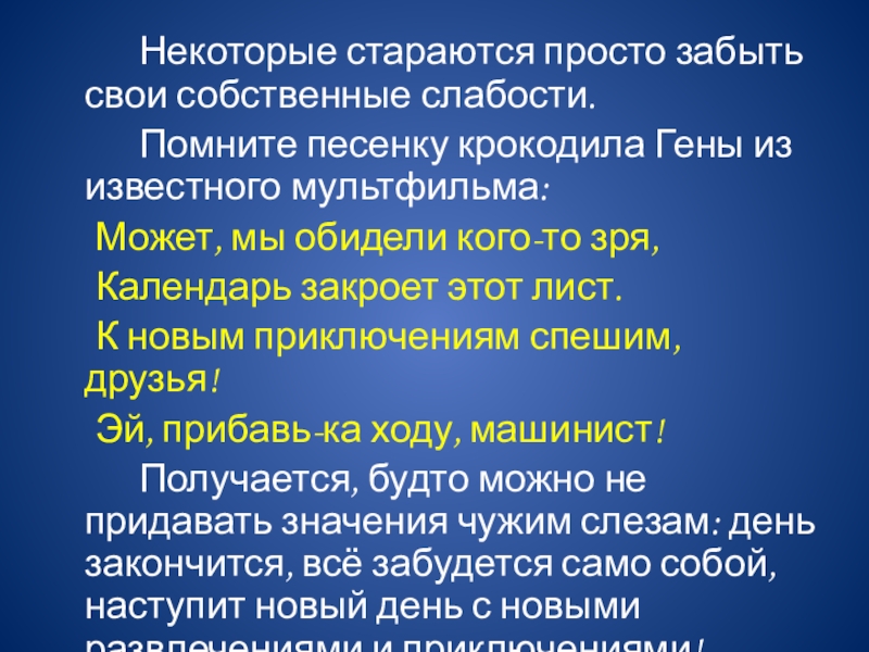 Слайд 14 Некоторые стараются просто забыть свои собственные слабости.