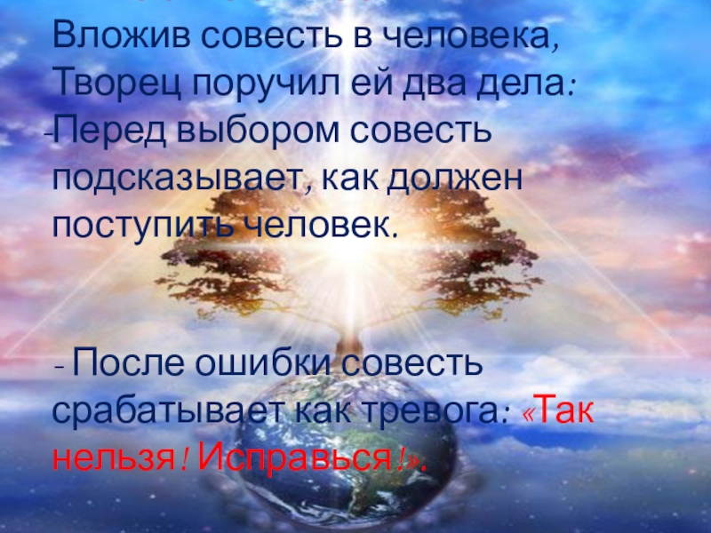 - После ошибки совесть срабатывает как тревога: «Так нельзя! Исправься!».