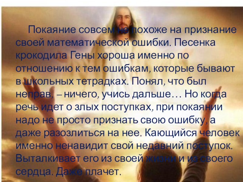 Слайд 18 Покаяние совсем не похоже на признание своей математической ошибки. Песенка крокодила