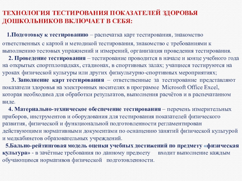 Тестирование по физическому воспитанию является для учащихся увлекательной игрой, где можно посостязаться (используя простейшие приборы) в силе, развитии грудной клетки, задержке дыхания, в развитии физических качеств.
