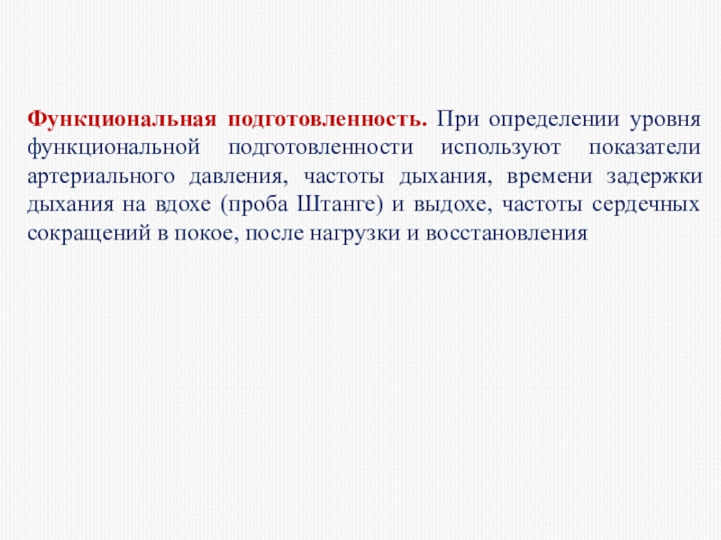 Слайд 37Функциональная подготовленность. При определении уровня функциональной подготовленности используют показатели артериального давления,